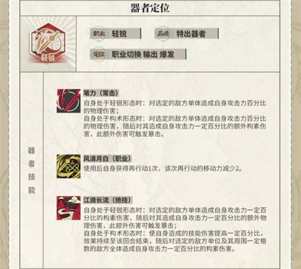 轻锐:绝技根据自身贯穿概率降低敌方防御