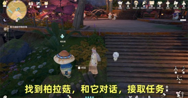 2、找到 NPC【柏拉菇】,与其对话,正式接取任务