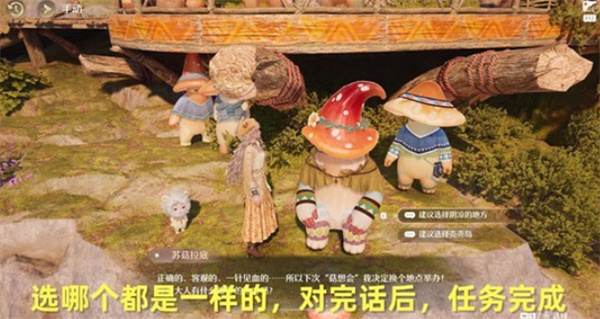 5、将【蜜蜜果汁】交给【苏菇拉底】,与苏菇拉底进行对话,选择下一场菇想会的地点,无论选择哪一项,实际地点均为【蜗牛农场】