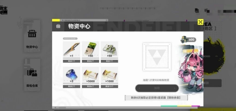 每个地区每日都可以收获600资源货币,资源货币可以用来在物资中心抽卡。