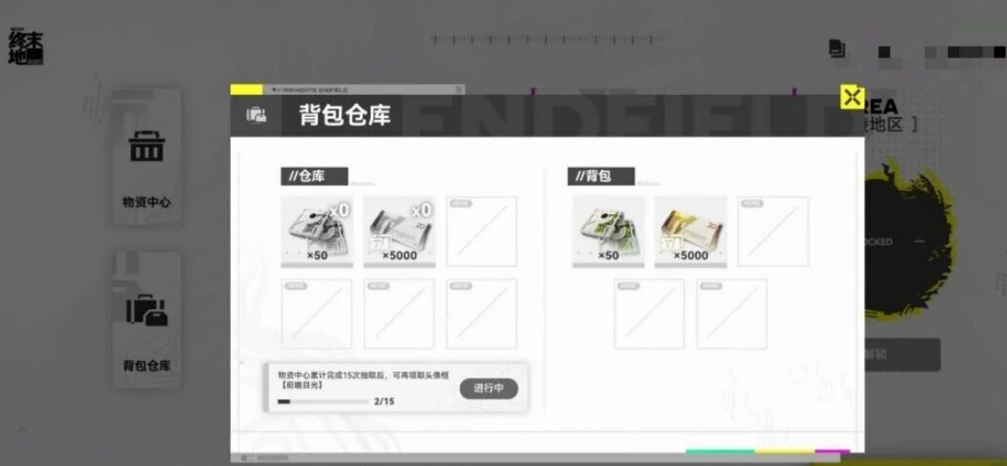 物资中心抽卡可以获得5星武器,经验书,武器升级书等资源,抽取十次内必得武器,抽取十五次将解锁一个头像框。
