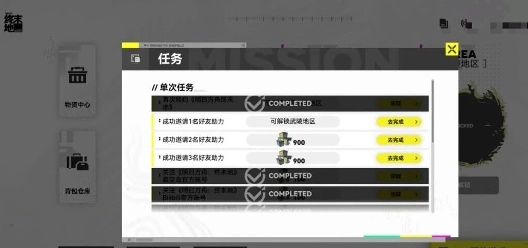 任务区域可以获得抽卡道具若干,任务也是非常简单的任务,像是关注游戏官方社交账号,分享活动等任务。