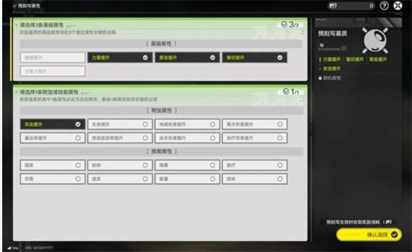 2、基础属性 5 选 3,附加属性与技能属性 16 选 1