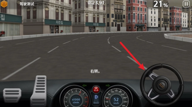 遇到弯道,拖动右侧的方向盘即可转弯。