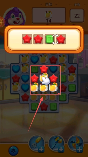 查看目标:在目标步数22的合合界面中,查看需要合成的糖果数量。