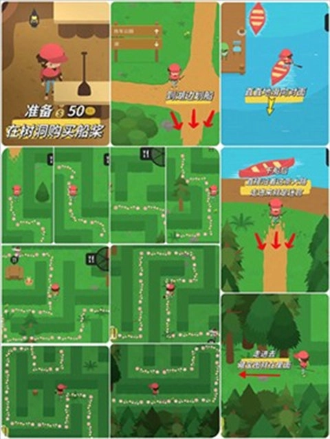 走迷宫的路线是这样的:从50号位置出发前往湖边,乘船划到对岸后进入迷宫,迷宫的终点就在那里。
