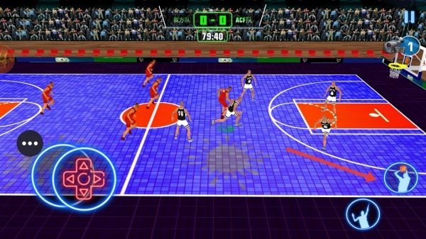 踏入篮球赛场,用左侧摇杆操控移动,右侧点击投篮按钮,突破对方防守寻觅空位投篮,通过得分赢得比赛,积攒货币来升级球员。