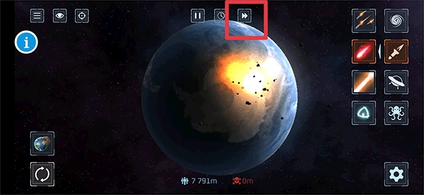点击上方的快进按钮能够提升进攻的速度,一直到这个星球被摧毁就可以了。