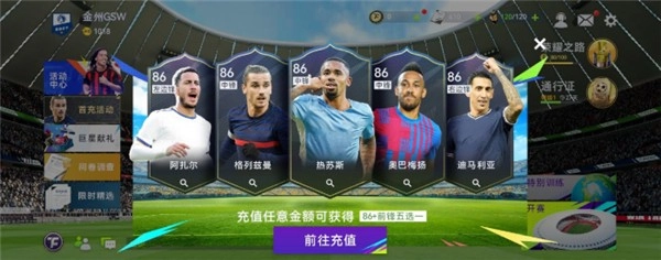 银球可通过生涯赛获取,且没有数量限制;金球则需参加天梯比赛获得,每日最多能得到15个。在活动里,集齐40个银球和20个金球,就能兑换到评分77以上的红卡球员。