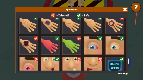 点击右上角的问号可以查看感染者的症状。
