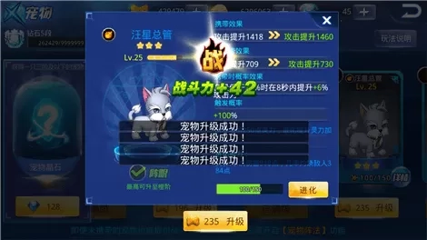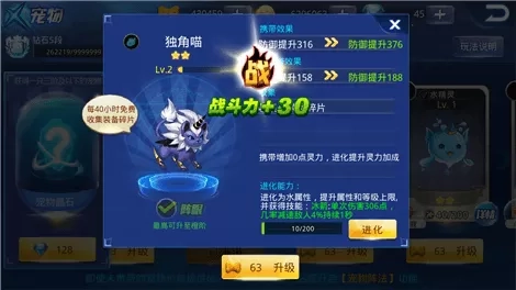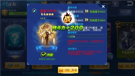 高阶宠物该升级的时候自然要升级,尤其是在等级还比较低的阶段,玩家每提升一级就能增加200战力呢!