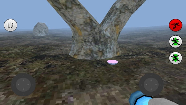 进入游戏后的界面如图所示,该游戏采用横版操作模式,左侧轮盘用于控制角色移动,右侧轮盘则负责调整游戏视角。