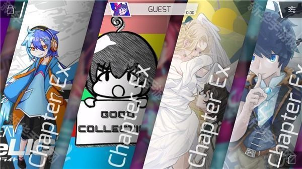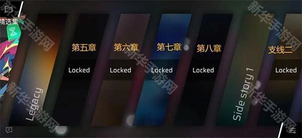 刚进入游戏会看到一大堆 Locked ,对应的章节如下图黄字标注。支线二的右边还有一个支线三章节。推荐一开始从左数第二的 Legacy 章节开始往后玩,按顺序解锁,最左的单曲精选集当作买歌商店。(Legacy章节现包含第一到第四章)