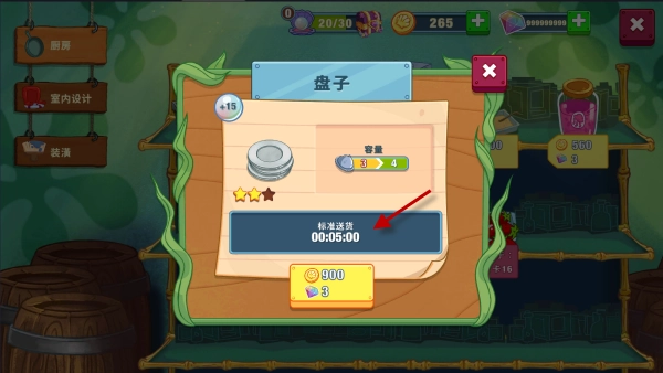 挑选厨具并点击升级按钮,接着在等待对应的送达时长后,升级操作便会完成。