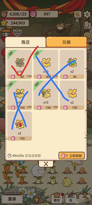 商店限定的鱼无法带来更多收益,建议优先购买建筑和藏品碎片,这些物品有加成效果。