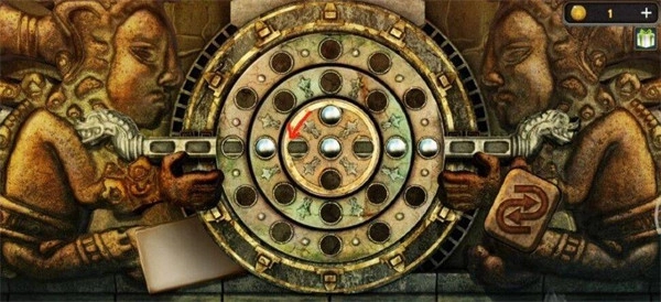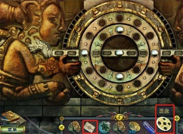 点击之后,把圆盘和图纸放进去。放好之后,就会进入排列圆球的小游戏环节,你可以先转动中间的圆盘。