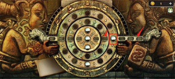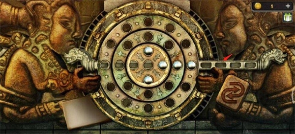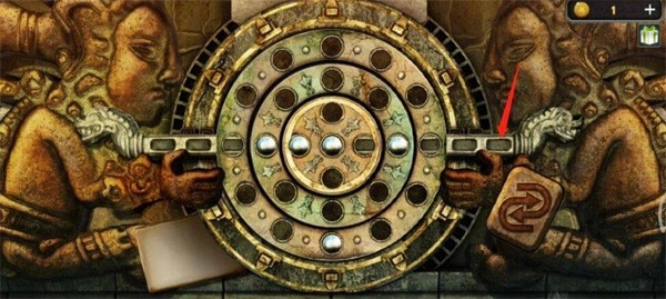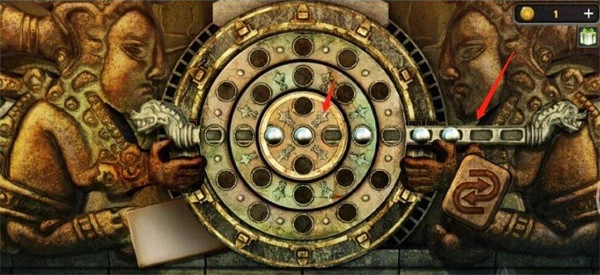 移完之后,接着把横杆往左推两格,完成这一步后,转圆盘的小游戏就能通过了。