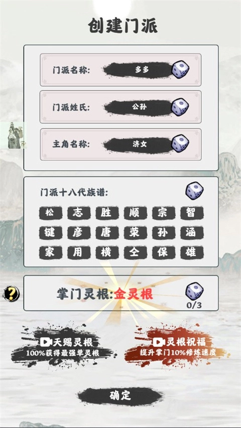 从给定的选项里挑选门派的天赋资料,为门派的发展打下最初的优势基础。