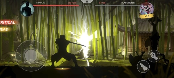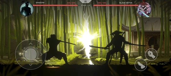 游戏采用横版格斗的玩法,屏幕左侧的轮盘用于操控角色移动,右侧则设置了拳击、脚踢等操作键位。