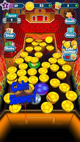 当触发Coin Shower这类增益效果时,游戏场景里会出现大量金币,要是能集中收集这些金币,就能快速积攒资源,进而加快游戏进度。