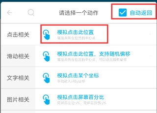 在【点击相关】里,点击【模拟点击此位置】