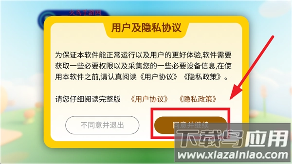 请先安装哆视佳视觉训练应用,完成安装后将其打开。当界面上出现用户及隐私协议的提示时,点击“同意并继续”按钮即可。