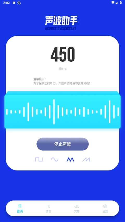 你既可以通过调节音量来控制频率的大小,也能够选择不同类型的波形。
