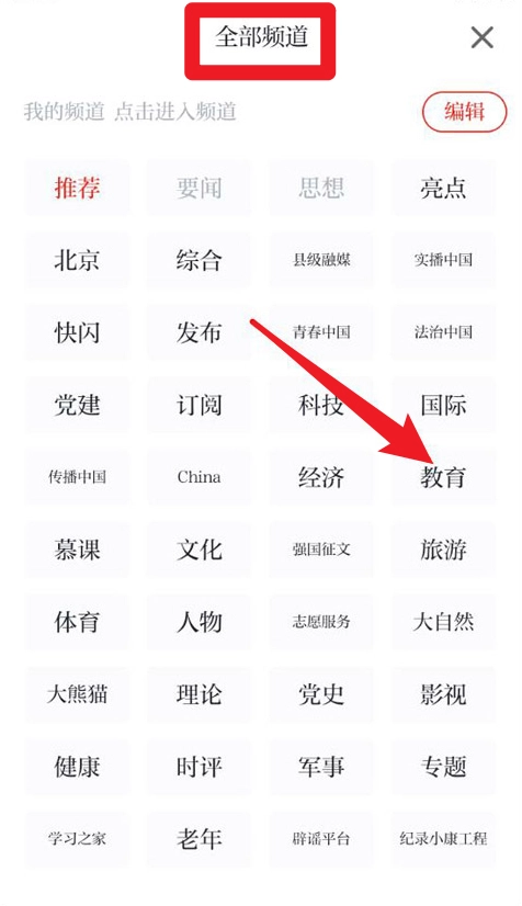 在“全部频道”板块里,用户能够挑选自己感兴趣的主题,像教育、科技、经济、文化这类,进入对应的频道后就能查看相关的资讯内容。