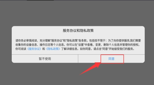 启动软件,确认服务协议与隐私政策后进入登录界面。