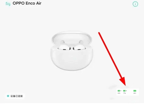 接着在耳机详情界面的右下方就能看到耳机盒的电量信息了。