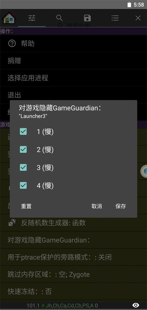 针对ARM及x86设备(含x86仿真器)的游戏,可实现减速与加速(speedhack)功能。此外,该功能支持在64位设备上,对32位和64位应用程序运用speedhack技术。