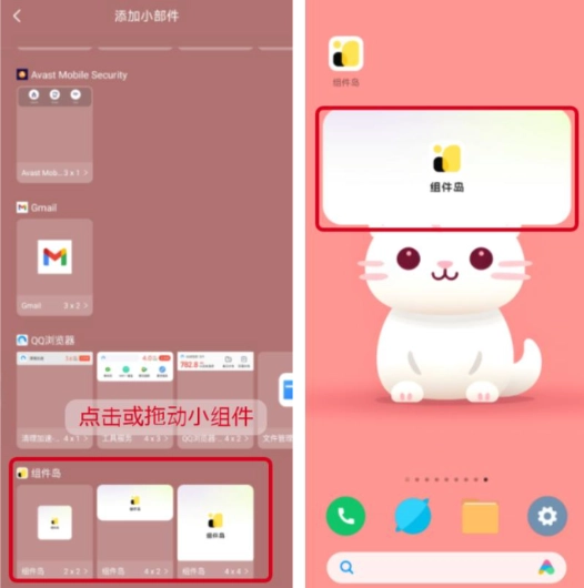 在列表里找到【组件岛】,挑选好对应的小组件尺寸,接着点击或者拖动该小组件到桌面就行。