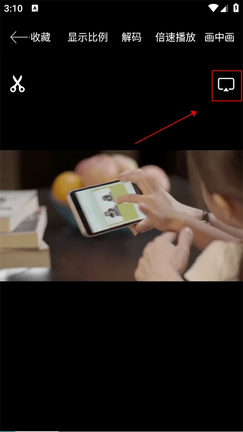 播放时轻点屏幕呼出进度条,接着点击进度条右边的方框图标