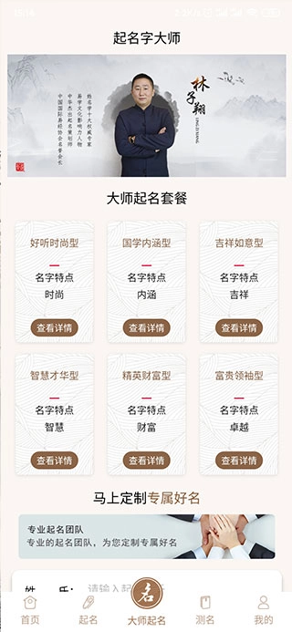 起名大师是一款集公司起名、店铺命名、公司名称测算、名字解析、姓名评分、重名查询、命名流行趋势分析及专业定制服务于一体的综合型取名解名工具。