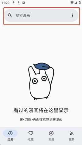 打开后,点击首页顶部的搜索栏,输入关键词,就能搜索漫画了。