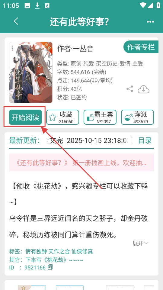 在《还有此等好事?》的详情页面,如果想要开始阅读,点击【开始阅读】按钮,就能进入阅读界面啦。