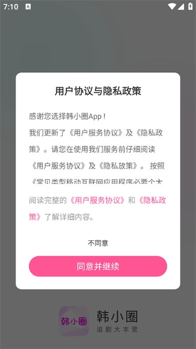 打开软件后,请先阅读隐私政策与用户协议,点击同意按钮即可进入软件使用。