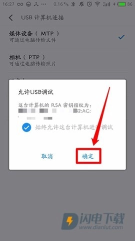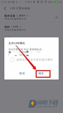 当弹出“允许USB调试”的提示框时,请点击“确定”按钮。