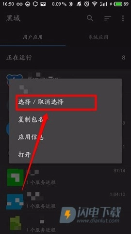 之后,按正常流程进入黑域,挑选那些不希望在后台运行的应用;