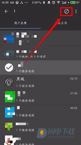 然后点击右上角的“禁止”按钮,黑域就会自动切断该应用的后台运行。