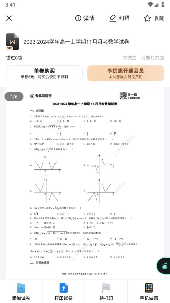 考霸刷题宝的题库里有大量优质试卷,您既可以挑选我们精心筛选的合集试卷,直接打印出来做或者在线完成答题;也能进入题库板块,通过查询或搜索功能找到自己需要的特定试卷。