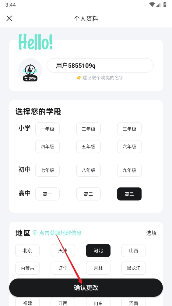 选择所需学段和地区,点击"确认更改"即可。