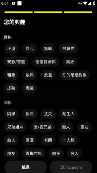接着挑选与自身兴趣相契合的性格类型,选得越贴合,后续推荐的角色就会越精准。