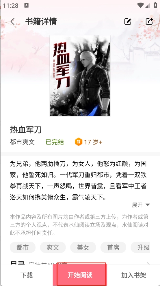 点开喜欢的小说资源进入详情页,点击“开始阅读”。