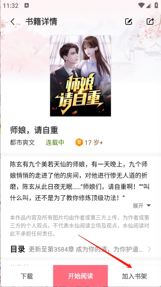 找到你喜欢的小说资源并点开,进入详情页面后,点击“加入书架”按钮。