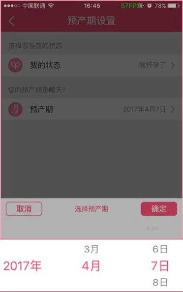 进入“预产期设置”界面后,挑选准确的预产期时间,确认修改即可。