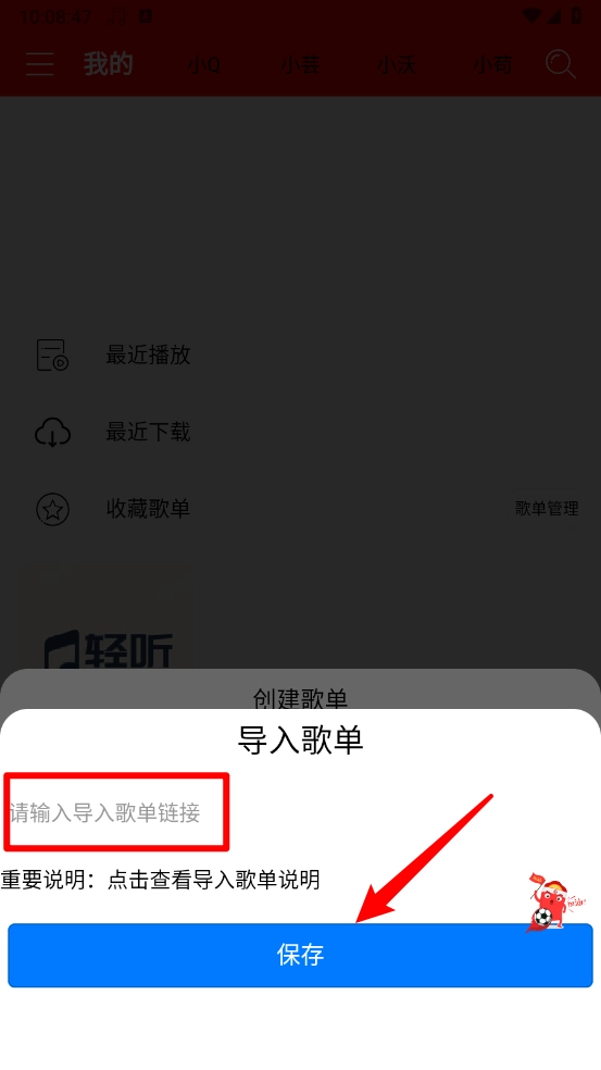 最后输入歌单的连接,点击"保存"即可自动导入。
