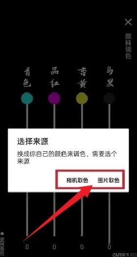 在来源页面点击取色途径按钮,可通过图片、摄像头或其他方式快速获取颜色。