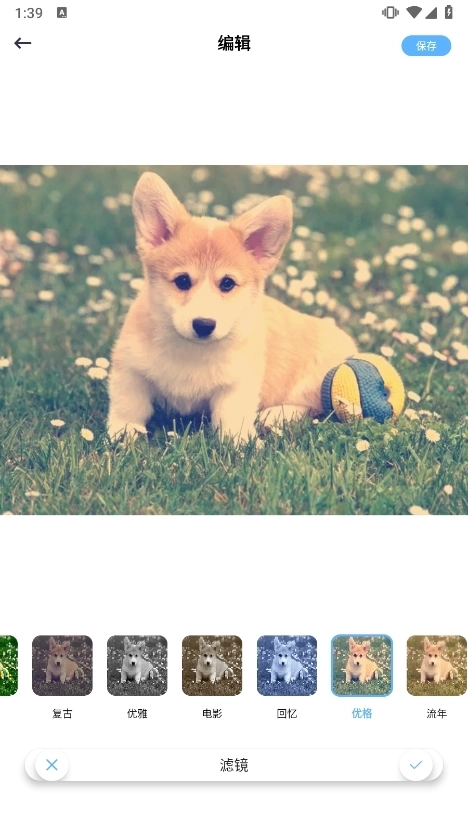 在编辑界面里浏览并挑选你喜欢的滤镜效果,编辑好之后,点击“保存”按钮。