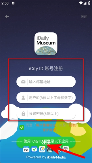输入邮箱地址、用户ID并设置密码,然后点击注册按钮,即可完成账号注册流程。